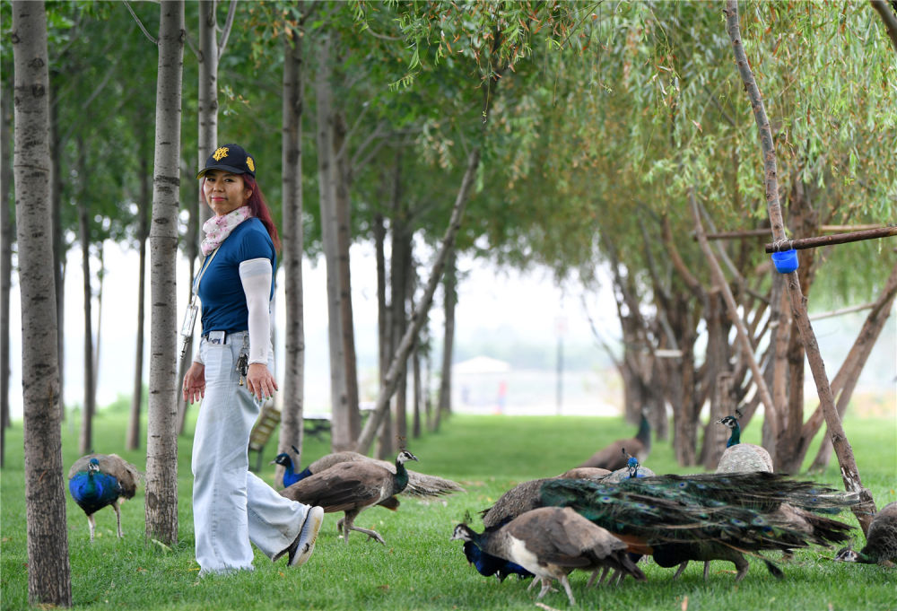 工作人員在曙光水鎮(zhèn)內(nèi)照看孔雀。(新華社記者李然攝) 新華社天津7月23日電(記者白佳麗)錦鯉淺游,荷葉輕擺,湖光瀲滟。7月中旬的周末,天津北辰區(qū)西堤頭鎮(zhèn)趙莊子村的曙光水鎮(zhèn)里游客往來不絕,一場戶外音樂節(jié)掀起了夏日“熱浪”。 不遠(yuǎn)處,董青花用幾聲“鳥語”,逗引得幾只孔雀向游客“示美”。年過50歲的她,靠著曙光水鎮(zhèn)禽類飼養(yǎng)員的工作,供養(yǎng)著正在讀大學(xué)的孩子。 走出景區(qū),一排排村民居住的樓房整齊排布,餐廳、溫泉、酒店一應(yīng)俱全。“甩掉窮帽子,吃上‘生態(tài)飯’,家家奔小康”,是趙莊子村這些年奮斗的成果。 談及過去,村民們七嘴八舌地吐槽。 “成片土坯房,雨季一到,干部們挨戶查看,最擔(dān)心哪家房子塌了?!?/p> “唯一一條出村路要穿過鄰村,交通限制經(jīng)濟(jì),村里沒一家村辦企業(yè)?!?/p> “一聽是趙莊子村的人,沒人愿意把女兒嫁過來,家里窮只好一輩子打光棍?!?/p> 改變,從2003年開始。那年,致富能手趙紹軍當(dāng)選為趙莊子村黨支部書記兼村委會主任,成為村里的“當(dāng)家人”。 為了不負(fù)鄉(xiāng)親們的眾望,上任伊始,他和村兩委班子成員征得黨員干部和村民代表的同意,決定進(jìn)行舊村改造,讓世世代代住土窩子的“泥腿子”搬進(jìn)和城里人一樣的樓房。隨后幾年,400余戶1000多名村民陸續(xù)“上了樓”。 可只有好樓房還不行,貧困的村民連暖氣費(fèi)都交不起,必須發(fā)展產(chǎn)業(yè)、帶動就業(yè)、促進(jìn)增收。 趙莊子村地理位置特殊,東臨華北河,南臨永定新河,早先這里水面廣闊,人們主要以漁業(yè)為生。 “水產(chǎn)養(yǎng)殖在當(dāng)時(shí)并不賺錢,我們就謀劃結(jié)合鄉(xiāng)村環(huán)境治理,讓鄉(xiāng)村生態(tài)旅游業(yè)成為農(nóng)村經(jīng)濟(jì)發(fā)展的一條有效途徑?!壁w紹軍說。2013年起,村里開始利用獨(dú)有的資源,重點(diǎn)發(fā)展生態(tài)旅游和漁文化旅游。 一個(gè)個(gè)魚塘被打通重整,一個(gè)個(gè)旅游設(shè)施建成使用,農(nóng)民、漁民“搖身一變”成為鄉(xiāng)村旅游從業(yè)者,小商、小販開始經(jīng)營農(nóng)家樂。