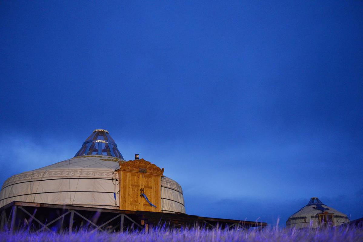 晚飯后,面朝呼和諾爾湖,天空是深邃的藍(lán)。夜晚的蒙古包,靜謐又祥和。可以好好享受草原的夜色,早上日出后又是充滿熱情的人們,向你獻(xiàn)上最好的禮遇。 |