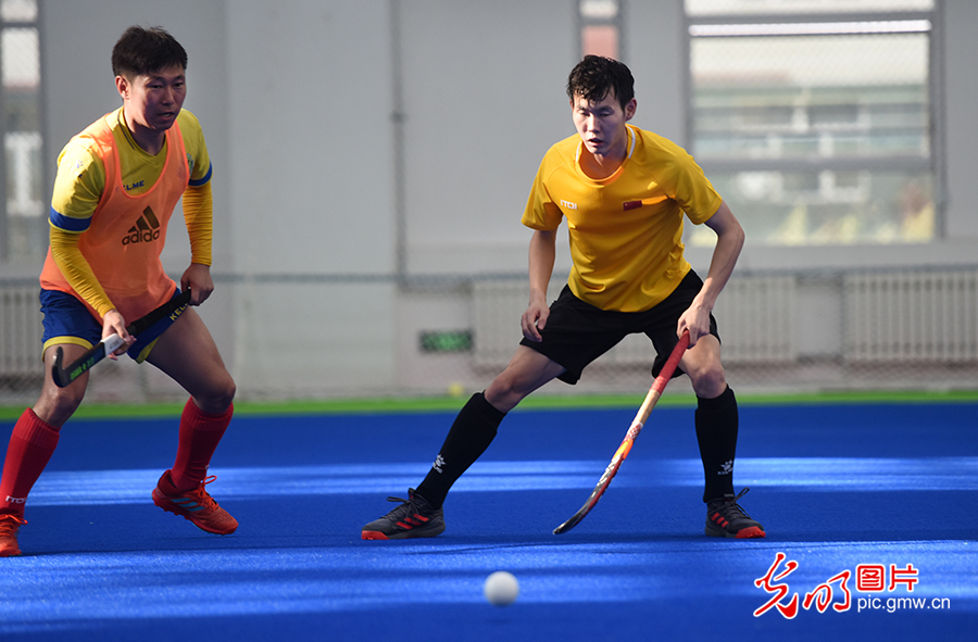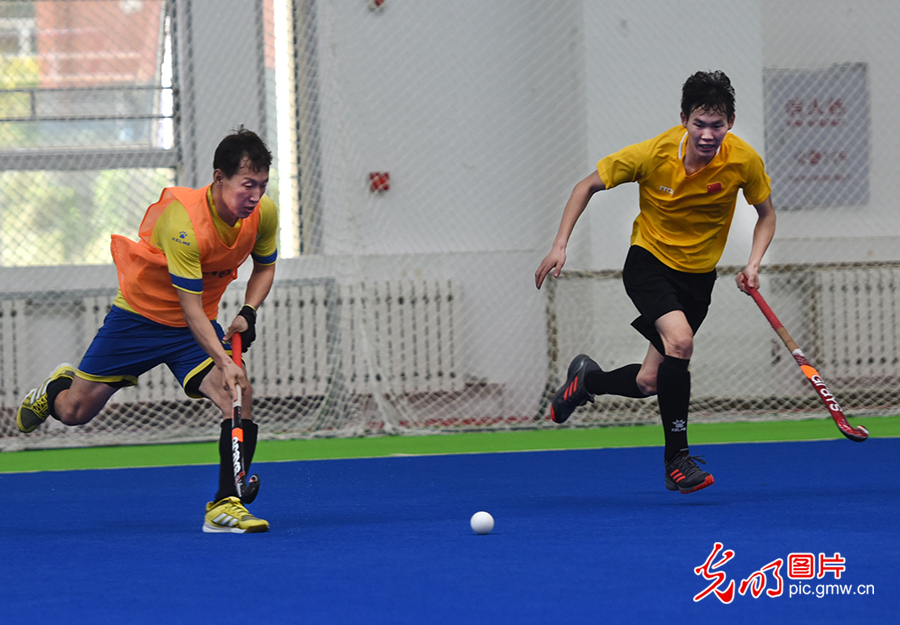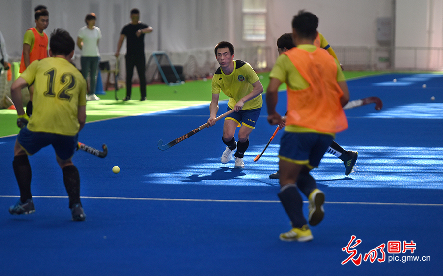 為填補新中國競技體育項目空白,1976年,中國第一支男子曲棍球隊在莫旗組建。1978年,以莫旗籍教練和運動員為主組建了第一支中國男子曲棍球隊,開始一系列出國訪問和比賽交流活動。圖為2020年8月4日,莫旗曲棍球隊在莫旗曲棍球訓練基地訓練。(潘迪攝/光明圖片)
