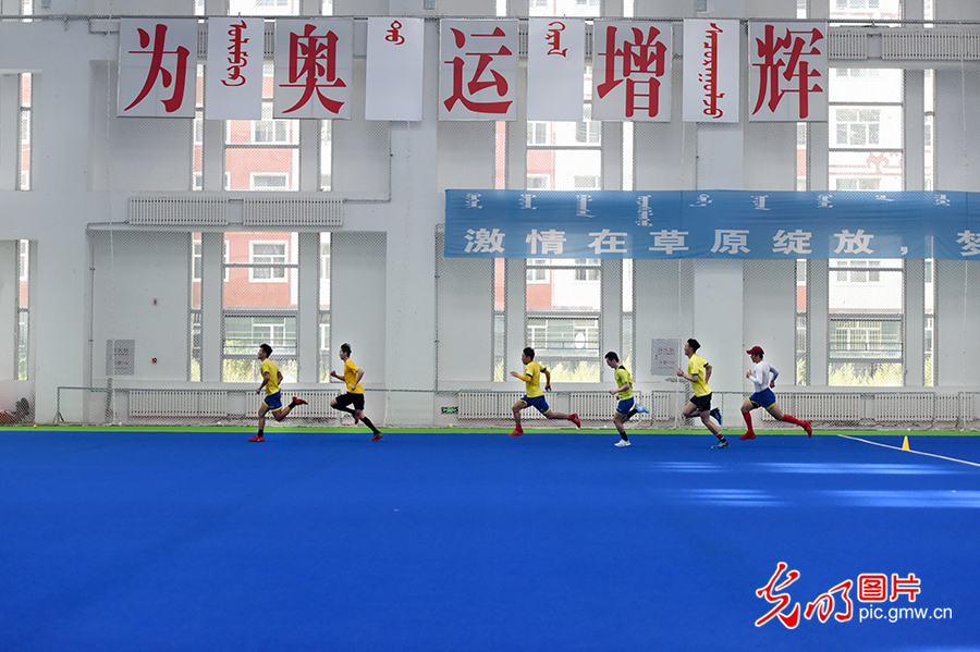 同時,莫旗曲棍球訓練基地基于硬件、氛圍優勢,先后承辦了大量比賽活動,莫旗也成為了國內曲棍球賽事的首選地。圖為2020年8月4日,莫旗曲棍球隊在莫旗曲棍球訓練基地訓練。(潘迪攝/光明圖片)