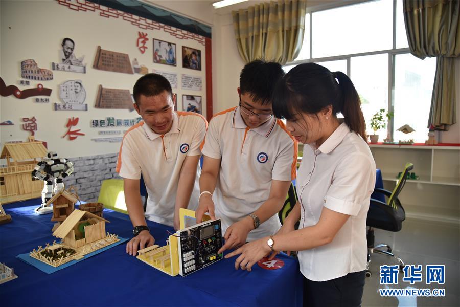 在貴州省黔南布依族苗族自治州長順縣民族高級中學,老師(右)指導學生開展科技活動(7月28日攝)。新華社記者 駱飛 攝 組團幫扶強內核 1年前,從長順縣貧困家庭走出的楊璐薇,第一次離家來到百公里外的貴陽實驗三中,在這里開啟3年高中生活。她不是跨縣“擇校”,而是成為學校特殊“長順班”的一員。 “在省級示范高中設立貧困縣專班,3年后回縣里參加高考,讓貧困縣的孩子有機會享受全省最好的教育資源。”貴陽實驗三中校長石艷梅說,這樣的探索既能改變山區孩子們的命運,更將為貧困地區未來發展播種希望。 “組團式”教育扶貧在長順縣進行了諸多探索:通過“智慧課堂”遠程指導教學,縣里的老師和省級名師同步上課“無縫對接”;在貧困縣中小學設立科技課堂,大山里的孩子第一次捧回全國性科技創新大賽獎杯;培育校園足球隊,不僅首次獲得全省中學生運動會冠軍,還幫助不少孩子通過足球特長考上理想大學。 “過去教學管理水平比較薄弱,中考成績優異或家里有條件的孩子,都到周邊縣市或貴陽讀高中。百姓對教育沒信心,發展怎么會有希望。”貴陽六中校長魏林說,貴州兩個頂尖名校長工作室在長順設立工作站,長期派駐管理和教學人員駐校,全方位引入先進教學管理模式。教育質量提升贏得了百姓口碑,外流生源漸漸回來了。