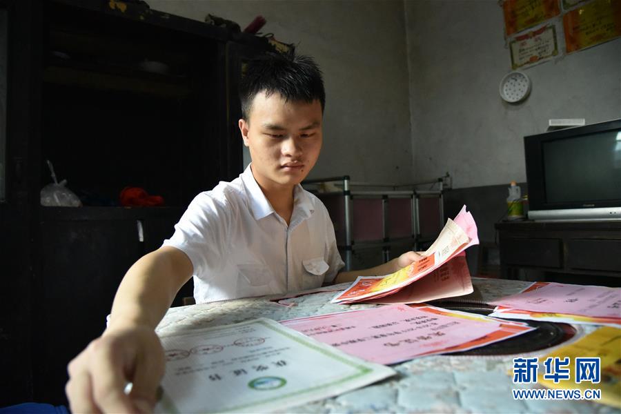 貴州省黔南布依族苗族自治州長順縣民族高級中學學生梁紅福在家中整理自己的獎狀,他今年高考考出了好成績(7月29日攝)。新華社記者 駱飛 攝 新華社貴陽8月10日電 題:托起貧困山鄉的未來——貴州“組團式”教育扶貧見聞 新華社記者駱飛 冗雷村是坐落在麻山腹地貴州省黔南布依族苗族自治州長順縣長寨鎮的一個貧困村,再過幾天,18歲的黃明孝就將收到他夢寐以求的錄取通知書。這個冗雷村建檔立卡貧困家庭走出來的布依族男孩,心中目標是同濟大學土木工程專業,成績優異的他信心十足。 三年間,長順縣整體教育面貌煥然一新,更多貧困家庭的孩子圓夢大學,越來越多打算到外地讀書的學生選擇回來。“組團式”教育扶貧改變了一個貧困縣孩子們的命運,更托起山鄉發展的未來。