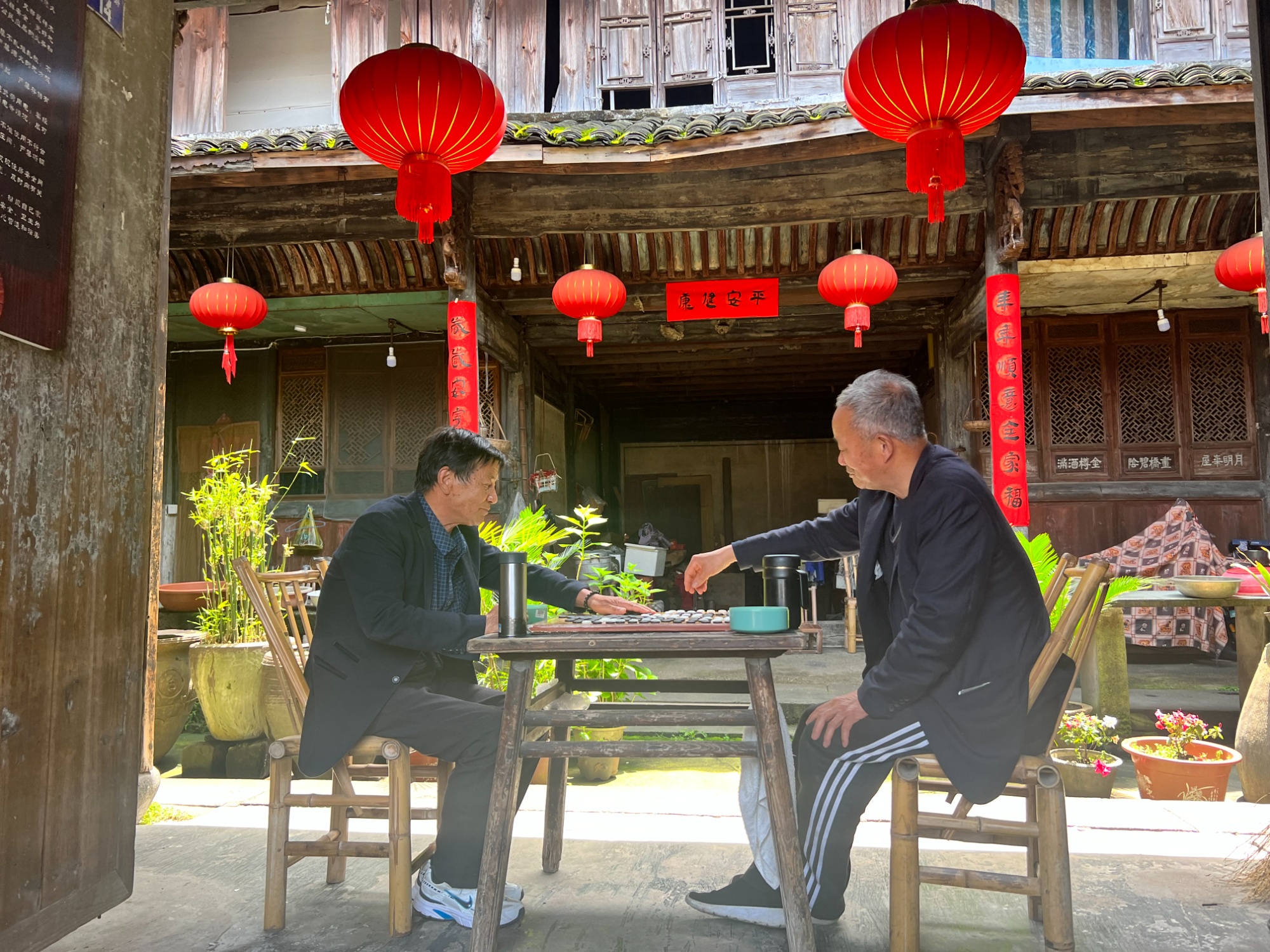 當地居民正在下圍棋(央廣網見習記者 孫俊 攝)