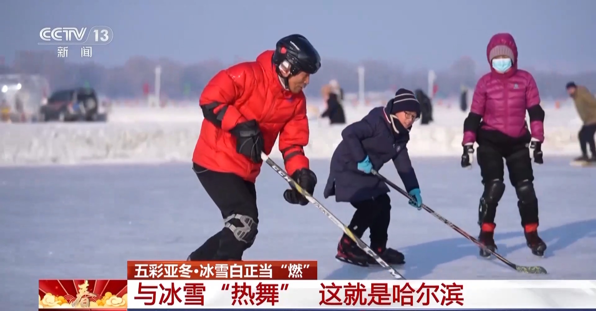 在松花江上的公益冰場(chǎng),我們看到男女老少玩得這叫一個(gè)熱“雪”沸騰,打冰球、玩冰車、溜野冰,不亦樂乎,而這些對(duì)于哈爾濱人來說,不過是冬日里再平常不過的日常。李乃凡大姨和8歲的小孫女你追我趕,在冰面上刮起了一陣陣旋風(fēng)。
