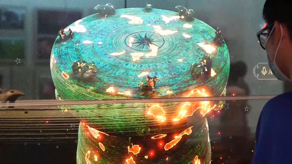 在廣西民族博物館,新推出的AI全息文物展柜吸引了眾多參觀者的目光。