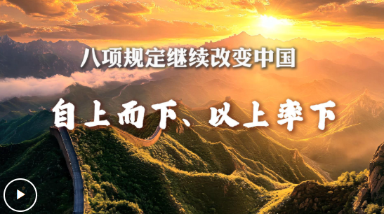 習近平總書記強調:"改進作風必須自上而下、以上率下。"黨的十八大以來,無論是出席會議活動、考察調研,還是出國訪問,習近平總書記始終嚴格執行中央八項規定,以身作則、率先垂范。