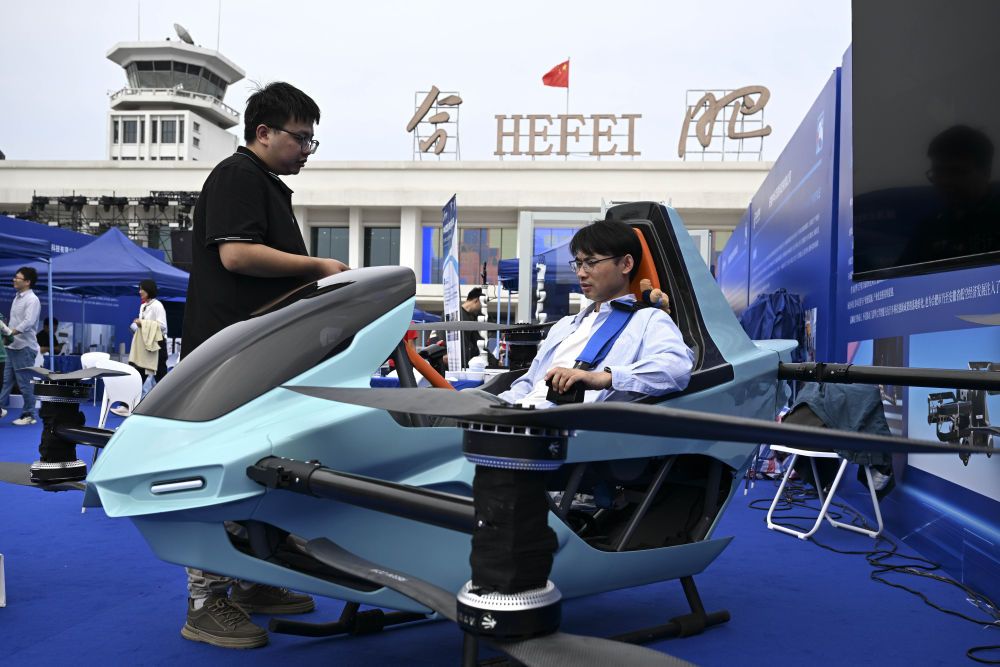2025年9月21日,觀(guān)眾在2025世界制造業(yè)大會(huì)“全空間無(wú)人體系成果展”上體驗(yàn)由安徽猛獅航空科技有限公司展出的一款無(wú)人駕駛飛行摩托。新華社記者 黃博涵 攝