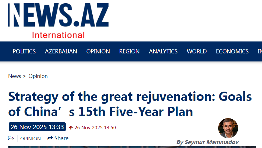 中國日報網11月28日電 近日,國際專家俱樂部EurAsiaAz主任塞繆爾·馬邁多夫在阿塞拜疆“News.Az”國際新聞網發表文章稱,在全球進入“戰略不確定時代”的背景下,中國謀定而后動,以罕見的長遠戰略眼光和堅定的執行力,給出了截然不同的答案。