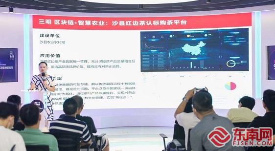 陳一彬展示區(qū)塊鏈的不同場(chǎng)景 東南網(wǎng)記者陳楠攝 記者在現(xiàn)場(chǎng)看到,共有熵鏈科技(福建)有限公司、銳達(dá)互動(dòng)科技股份有限公司等6家企業(yè)帶來(lái)創(chuàng)新應(yīng)用分享,包括區(qū)塊鏈應(yīng)用開(kāi)發(fā)引擎盤(pán)古?BDE、區(qū)塊鏈應(yīng)用建創(chuàng)平臺(tái)夸父?BAB、IPFS 文件協(xié)同共享平臺(tái)、基于區(qū)塊鏈的綜合素質(zhì)評(píng)價(jià)深化應(yīng)用、建盞云、SOLAR 數(shù)據(jù)共享平臺(tái)等。 福建省區(qū)塊鏈協(xié)會(huì)秘書(shū)長(zhǎng)陳一彬?yàn)榇蠹曳謩e展示了來(lái)自福州、廈門(mén)、泉州、南平、平潭、三明、龍巖等地15個(gè)不同場(chǎng)景的區(qū)塊鏈創(chuàng)新應(yīng)用,包括沙縣紅邊茶認(rèn)標(biāo)購(gòu)茶平臺(tái)、武夷山區(qū)塊鏈溯源平臺(tái)、“票鏈”區(qū)塊鏈電子發(fā)票平臺(tái)等。其中沙縣紅邊茶認(rèn)標(biāo)購(gòu)茶平臺(tái)可幫助實(shí)現(xiàn)茶葉溯源數(shù)據(jù)的可信存儲(chǔ),解決傳統(tǒng)溯源流程中數(shù)據(jù)易偽造、易篡改、難校驗(yàn)的問(wèn)題。平臺(tái)以符合國(guó)家統(tǒng)一編碼體系的“溯源碼”為載體,進(jìn)行茶葉產(chǎn)品專屬賦碼,實(shí)現(xiàn)對(duì)茶企產(chǎn)量、商標(biāo)用量的精細(xì)化、數(shù)字化管理,實(shí)現(xiàn)“兩標(biāo)合一”,提升茶葉品質(zhì)及品牌影響力。 |