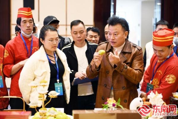 評(píng)委詹宗林(右二)在點(diǎn)評(píng)參賽美食 “參賽選手們對(duì)食材把控得不錯(cuò),制作出的面食、點(diǎn)心、糕點(diǎn)等都很有特色。比如,普濟(jì)茶糍、綠野仙蹤面、茶鮮饅頭等菜品,很好地將本地食材與茶葉融合,有茶香味,再用上小竹籃擺盤(pán),突出了鄉(xiāng)味。”泰寧縣首屆美食烹飪協(xié)會(huì)會(huì)長(zhǎng)、閩菜界的流量網(wǎng)紅尋真味美叔(佬美)詹宗林是評(píng)委之一,在他看來(lái),將茶葉與美食融合,本身存在很大的難度,而參賽選手們巧用熏烤、爆炒、萃取等烹飪技法,制作出了各具特色的茶元素創(chuàng)新菜品,值得點(diǎn)贊。 尤溪縣是全國(guó)十大生態(tài)產(chǎn)茶縣、全國(guó)重點(diǎn)產(chǎn)茶縣、全國(guó)茶產(chǎn)業(yè)百?gòu)?qiáng)縣和全國(guó)無(wú)公害茶葉生產(chǎn)基地縣。自唐宋以來(lái),尤溪就有農(nóng)戶開(kāi)山種茶,明清時(shí)期茶產(chǎn)業(yè)蓬勃發(fā)展。如今,獨(dú)具地域特色的尤溪茶已成為福建地方名茶的代表。目前,全縣茶園10.05萬(wàn)畝,茶葉企業(yè)215家,涉茶人員4.5萬(wàn)人。其中,2023年全縣干茶產(chǎn)量1.6萬(wàn)噸,全產(chǎn)業(yè)鏈產(chǎn)值達(dá)18億元。