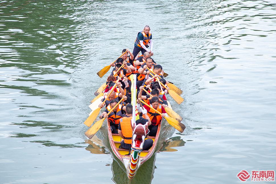 在河道,彩龍競渡熱鬧非凡;在岸邊,不少市民呼朋引伴,扶老攜幼,為選手加油吶喊。來自新羅區(qū)各口辦、20個(gè)鎮(zhèn)街,共30支隊(duì)伍,700余名選手同場競技,在龍津河上演“速度與激情”大片。 隨著發(fā)令槍一聲清脆鳴響,船只紛紛如離弦的箭一往直前。色彩斑斕的龍舟劈波斬浪,船頭的鼓手一錘一錘地打著節(jié)拍,船員們整齊劃一地?fù)]動(dòng)船槳,船槳與河面碰撞出激烈的水花,鳴奏出力與美的水上交響。船頭劈開粼粼波光,槳影翻飛間盡顯團(tuán)隊(duì)默契,在翻涌的水花中續(xù)寫“百舸爭流”的奮進(jìn)篇章。岸邊觀眾熱情高漲,喝彩聲、掌聲此起彼伏,響徹龍津河畔。