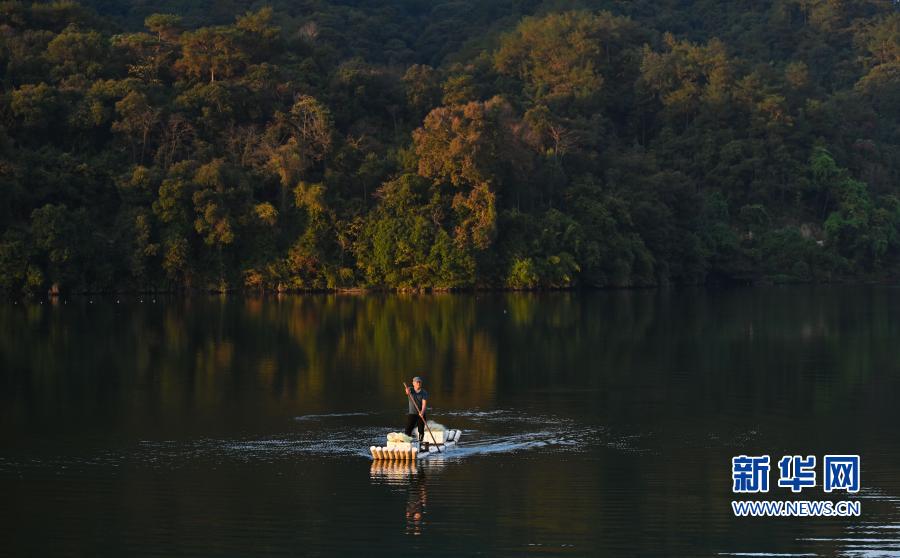 11月20日,常口村村民在村旁的金溪上劃船。新華社記者 宋為偉 攝