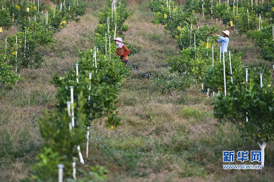 11月20日,農民在常口村的臍橙林進行日常管理。新華社記者 宋為偉 攝