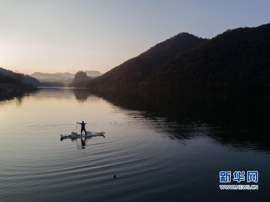 11月20日,常口村村民在村旁的金溪上捕魚(無人機照片)。新華社記者 宋為偉 攝