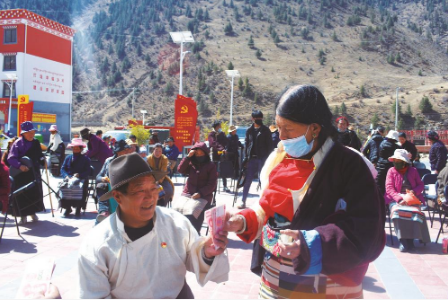 左貢縣亞中村村集體分紅儀式上,村民拿到分紅。
