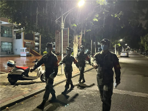 每一名退役士兵 肩上都扛著一份沉甸甸的責(zé)任 “若有戰(zhàn),召必回” 寒冷的雨夜里 他們的身影穿梭在校園中 默默守護(hù)著大家 雨夜堅(jiān)守 不懼困難