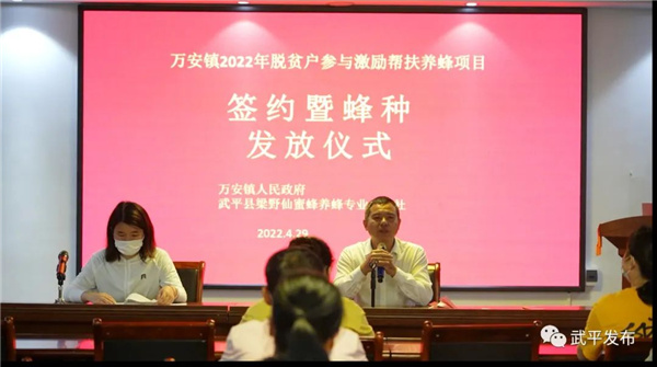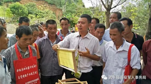 編者按 退役軍人是重要的人力資源,促進他們就業(yè)創(chuàng)業(yè)、引導他們積極投身創(chuàng)業(yè)創(chuàng)新,對于更好實現退役軍人自身價值、助推經濟社會發(fā)展、服務國防和軍隊建設具有重要意義。為貫徹執(zhí)行好省退役軍人廳關于《進一步促進退役軍人就業(yè)創(chuàng)業(yè)十條措施》,3月17日起,廳官微官網開設“創(chuàng)業(yè)先鋒”專欄,陸續(xù)報道我省退役軍人秉持軍人本色奮斗在經濟建設主戰(zhàn)場的創(chuàng)業(yè)典型,宣傳社會各界關心支持退役軍人就業(yè)創(chuàng)業(yè)的動人故事,以此弘揚自信自強、積極向上的精神風貌,營造有利于退役軍人就業(yè)創(chuàng)業(yè)的良好氛圍。 近日,武平縣萬安鎮(zhèn)2022年脫貧戶參與激勵幫扶養(yǎng)蜂項目簽約暨蜂種發(fā)放儀式在石燎閣蜜蜂科普基地舉行,基地負責人退役老兵鐘亮生為10位幫扶脫貧戶現場頒發(fā)了蜜蜂認養(yǎng)證書,并指導他們做好蜜蜂日常管理。