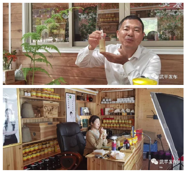 ▲鐘亮生到上杭為貧困戶開展養(yǎng)蜂培訓 注重開拓創(chuàng)新,勇當創(chuàng)業(yè)先鋒 鐘亮生通過潛心鉆研林下養(yǎng)蜂技術,申請了多項發(fā)明專利,編寫了《蜜蜂科普知識》《本地中蜂養(yǎng)殖技術》等叢書,在“甜蜜事業(yè)”上闖出一片天地。2018年被龍巖市人社局評為“中級畜牧師”職稱。 為了更好地推廣林下“甜蜜事業(yè)”,鐘亮生一方面繼續(xù)加大產品研發(fā),創(chuàng)新開發(fā)了蜂蜜綠茶、蜜蜂酒、蜂蜜金桔、蜂蜜姜茶、蜂蜜護膚品等蜂產品制品,提高了蜂產品附加值,延伸了蜂產品的產業(yè)鏈,增加了蜂農的收入。 與此同時,鐘亮生還借助電商、直播、認養(yǎng)等模式拓寬銷售渠道,助推石燎閣蜂蜜入駐信用社電商、閩西老字號、抖音等平臺,讓武平生態(tài)蜂蜜品牌持續(xù)打響全國各地。