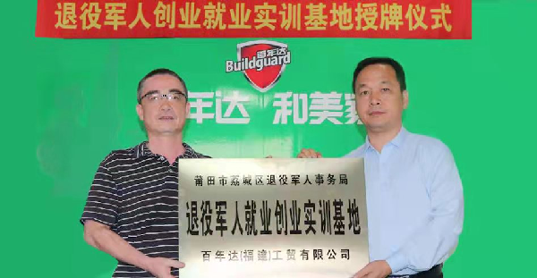 追夢路上,軍旅情懷一路伴跑 張志芳對部隊(duì)一直有著深厚的感情,百年達(dá)也始終把退役軍人放在突出位置,積極扶持退役軍人就業(yè)創(chuàng)業(yè)。公司現(xiàn)有退役軍人員工26人,其中副團(tuán)職自主擇業(yè)退役軍官3人,扶持退役軍人創(chuàng)業(yè)28人,安排退役軍人就業(yè)300多人,在現(xiàn)有幾十位退伍軍人經(jīng)銷商、員工的基礎(chǔ)上,還在繼續(xù)壯大退役軍人團(tuán)隊(duì),公司所有崗位招聘時優(yōu)先錄用退役軍人。對創(chuàng)業(yè)的退役軍人在政策上和經(jīng)濟(jì)上給予大力扶助,長年全程免費(fèi)技術(shù)培訓(xùn),全國300多家代理專賣店,其中公司特殊扶持的退役軍人創(chuàng)業(yè)代理店占三分之一。企業(yè)完善獨(dú)特軍旅企業(yè)文化,設(shè)有退役軍人之家,定期組織員工進(jìn)行基本軍事訓(xùn)練,開展愛黨、愛國、擁軍教育活動。 2020年6月,公司獲“退役軍人創(chuàng)業(yè)創(chuàng)新大賽一等獎”,張志芳個人獲得全國退役軍人創(chuàng)業(yè)先鋒稱號,受聘為福建省退役軍人事務(wù)廳創(chuàng)業(yè)導(dǎo)師團(tuán)成員。2020年11月,公司作為當(dāng)?shù)卣巴艘圮娙司蜆I(yè)創(chuàng)業(yè)實(shí)訓(xùn)基地”,在退役軍人就業(yè)創(chuàng)業(yè)事業(yè)上承載了更多更遠(yuǎn)的夢想。 |