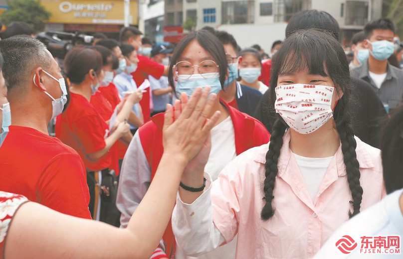 昨日,在周寧縣考場(chǎng)外,老師與考生擊掌加油。福建日?qǐng)?bào)記者 林輝 通訊員 林子杰 攝 東南網(wǎng)6月8日訊(福建日?qǐng)?bào)記者 儲(chǔ)白珊)7日上午,2022年福建省普通高考順利開考。全省各地氣溫涼爽,考生們順利進(jìn)入各考點(diǎn)。全省各考場(chǎng)秩序井然,考風(fēng)考紀(jì)良好。 今年高考我省有21.8萬名考生報(bào)考,全省共設(shè)87個(gè)考區(qū)、221個(gè)考點(diǎn)、8465個(gè)考場(chǎng),另設(shè)有115個(gè)備用考點(diǎn)、1062個(gè)備用隔離考場(chǎng)、87個(gè)備用病房考點(diǎn)(考場(chǎng)),抽調(diào)監(jiān)考員等考試工作人員4.5萬人參與考務(wù)工作。高考期間,省招委會(huì)有關(guān)成員單位負(fù)責(zé)人在省教育考試指揮中心聯(lián)合值班、集中辦公,共同應(yīng)對(duì)、快速處置可能發(fā)生的涉考突發(fā)偶發(fā)事件。各級(jí)招委會(huì)負(fù)責(zé)人及有關(guān)成員單位均在當(dāng)?shù)亟逃荚囍笓]中心聯(lián)合值班,全力保障高考安全順利。 |