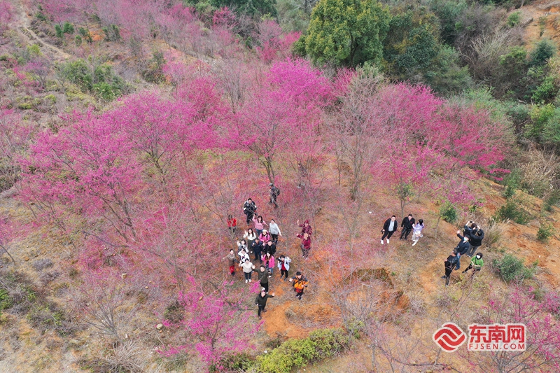 艷麗的櫻花吸引了許多攝影愛好者前來取景。陳英杰 攝 東南網2月15日訊(通訊員 陳英杰)初春的閩南大地,一派勃勃生機。日前,德化縣“花開瓷都·‘櫻’你浪漫”櫻花節活動在雷峰鎮潘祠村櫻花園舉辦, 千畝近100萬株福建山櫻花優雅綻放、競相爭艷,宛若“群櫻薈萃”,成為雷峰鎮一道獨特的風景線,吸引眾多游客爭相來打卡體驗。