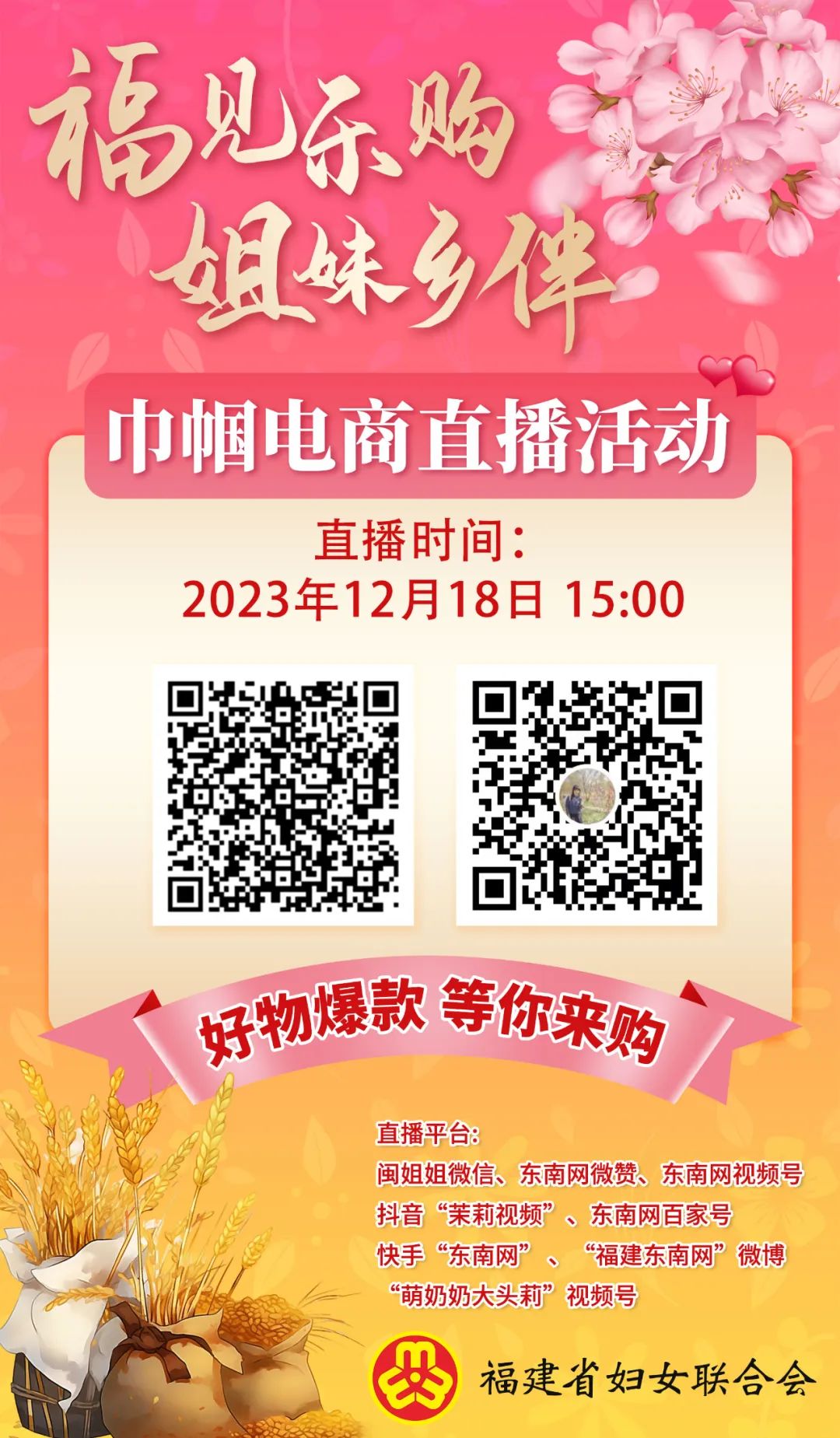 12月18日,福建省巾幗電商直播帶貨活動帶您走進中國首個美食地標(biāo)城市——寧德福鼎,共同探秘“美食圣地”的山海之味,掃描下方二維碼進入直播間,一起來盤點舌尖上的寧德滋味~