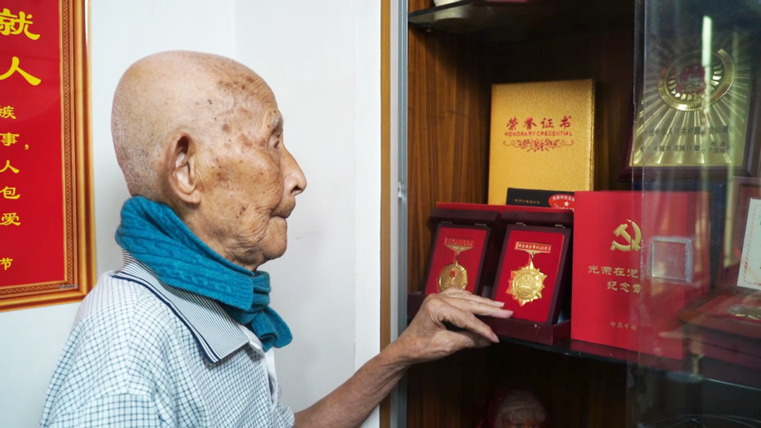 編者按:為紀念中國人民抗日戰(zhàn)爭暨世界反法西斯戰(zhàn)爭勝利80周年,深入挖掘抗戰(zhàn)老兵事跡,傳承紅色基因,省退役軍人事務廳聯(lián)合各地市退役軍人事務部門開展走進抗戰(zhàn)老兵家庭,重溫抗戰(zhàn)歷史系列活動。廳官網(wǎng)官微開辟“致敬抗戰(zhàn)老兵”專欄對此進行系列宣傳,今日推出《南征北戰(zhàn)11年,腿斷過兩次,抗戰(zhàn)老兵段兆善的烽火人生》故事。 半條毛毯在光影里靜靜躺著,泛黃的絨毛上深淺不一的補丁,那是血染的繃帶,是雪夜的褥子,更是一位老兵永不褪色的勛章。 今年是紀念中國人民抗日戰(zhàn)爭暨世界反法西斯戰(zhàn)爭勝利80周年,98歲的段兆善輕撫右腿那道貫穿股骨與髂骨的傷疤,目光如炬:“15歲扛槍,16歲負傷,南征北戰(zhàn)11年,這條腿斷過兩次,能活著看到新中國成立,值了!”