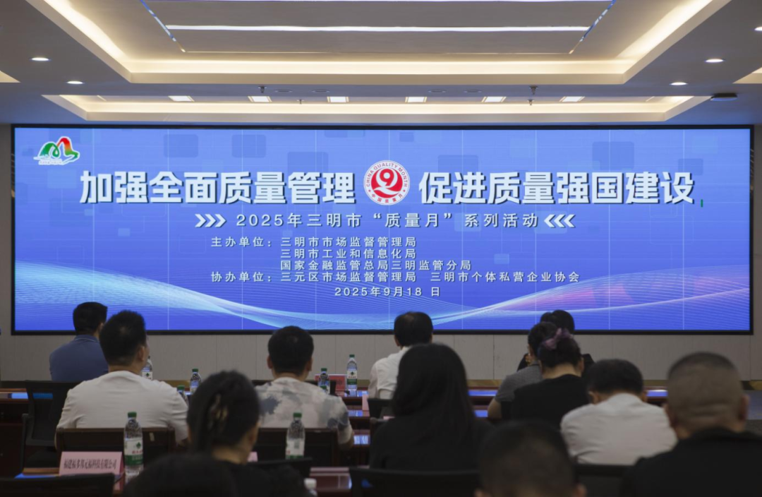 9月,三明市市場監管局聯合市工業和信息化局、國家金融監管總局三明監管分局,以“突出質量標桿引領 拓展質量賦能領域”為主線,組織全市各有關部門、優秀企業、金融機構及認證機構80余位代表,拉開了2025年三明市“質量月”活動的帷幕,為質量強市建設蓄勢聚能。